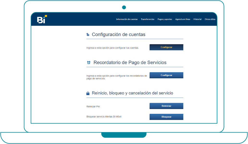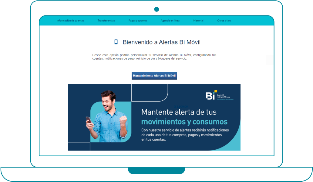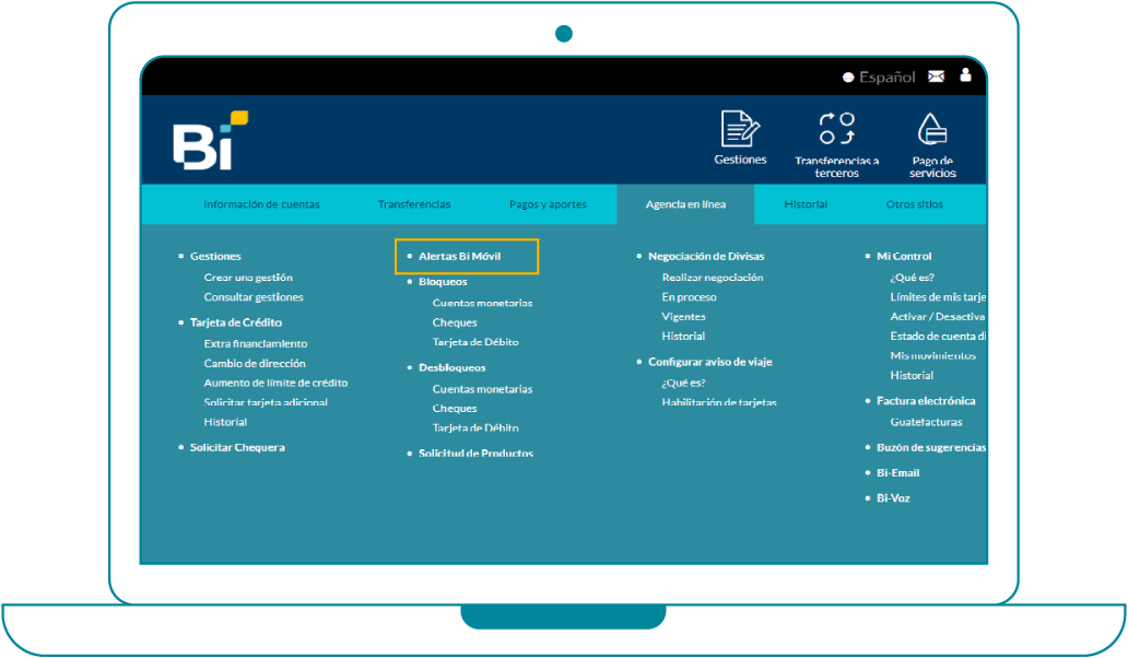 Dirígete a “Agencias en Línea” y selecciona la opción de “Alertas Bi Móvil”