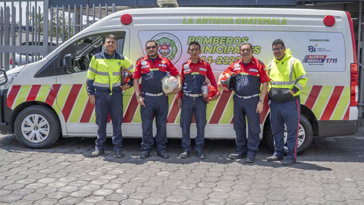 Guatemala 26 de marzo del 2024. Comprometidos con el bienestar de la sociedad guatemalteca, funcionarios de Banco Industrial y Alerta Médica hicieron entrega a los bomberos municipales de La Antigua Guatemala, una ambulancia equipada con: radio de frecuencia, camilla, sirena, luces de emergencia y bocina, para apoyar el noble trabajo que realizan a diario.