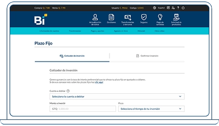 Puedes generar tu inversión a plazo fijo desde Bi en Línea en tu navegador: