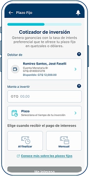 - Coloca el monto y el plazo que deseas invertir.