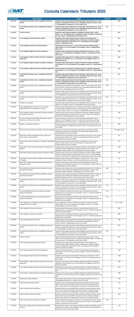 Calendario SAT Julio 2025