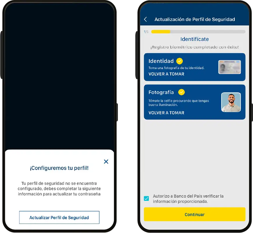 Si tu perfil de seguridad esta incompleto, actualízalo en App Banpaís siguiendo estos pasos: